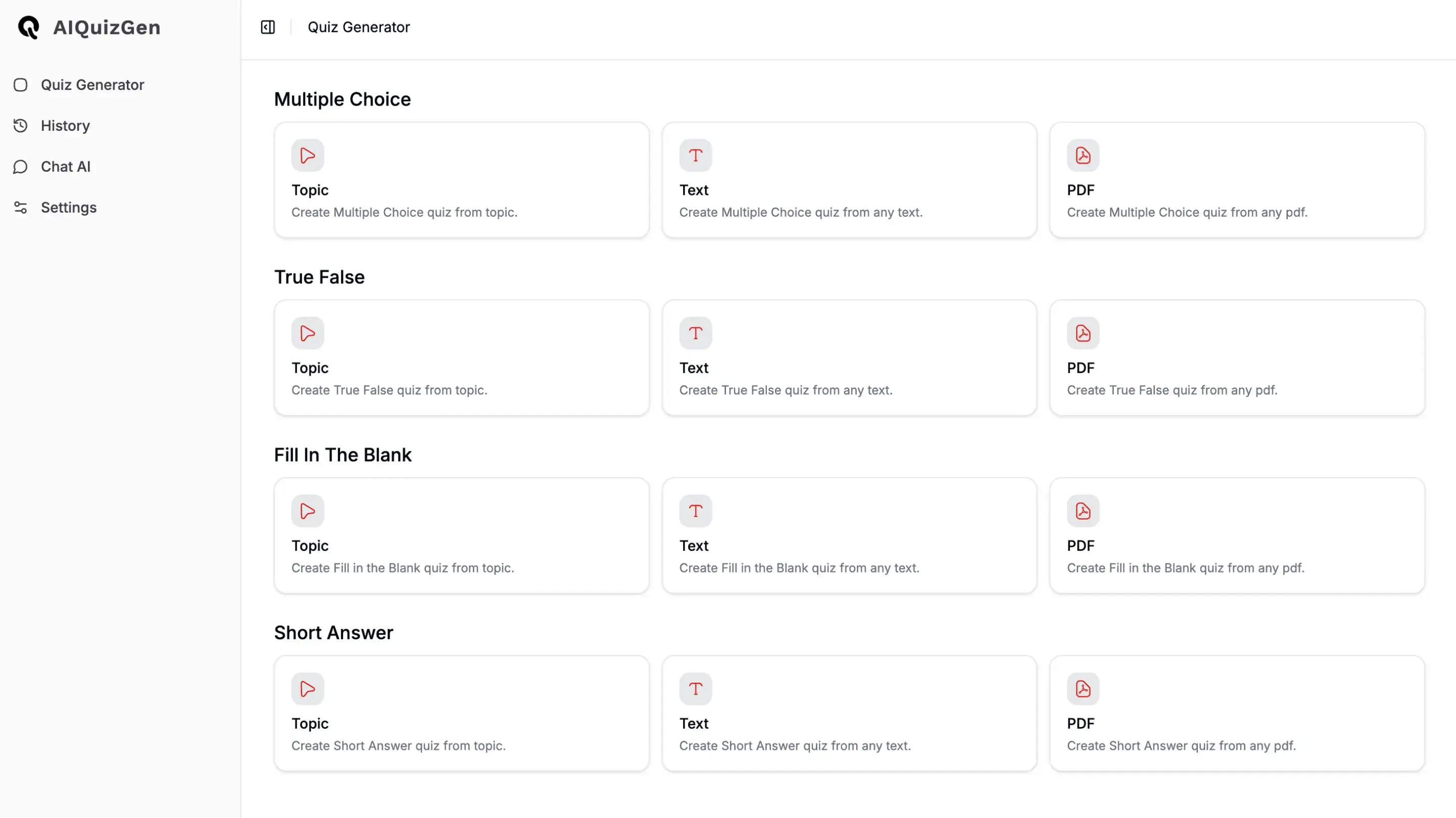 テキスト、URL、トピックなど、あらゆるコンテンツを、楽しく魅力的なクイズに瞬時に変換できます。