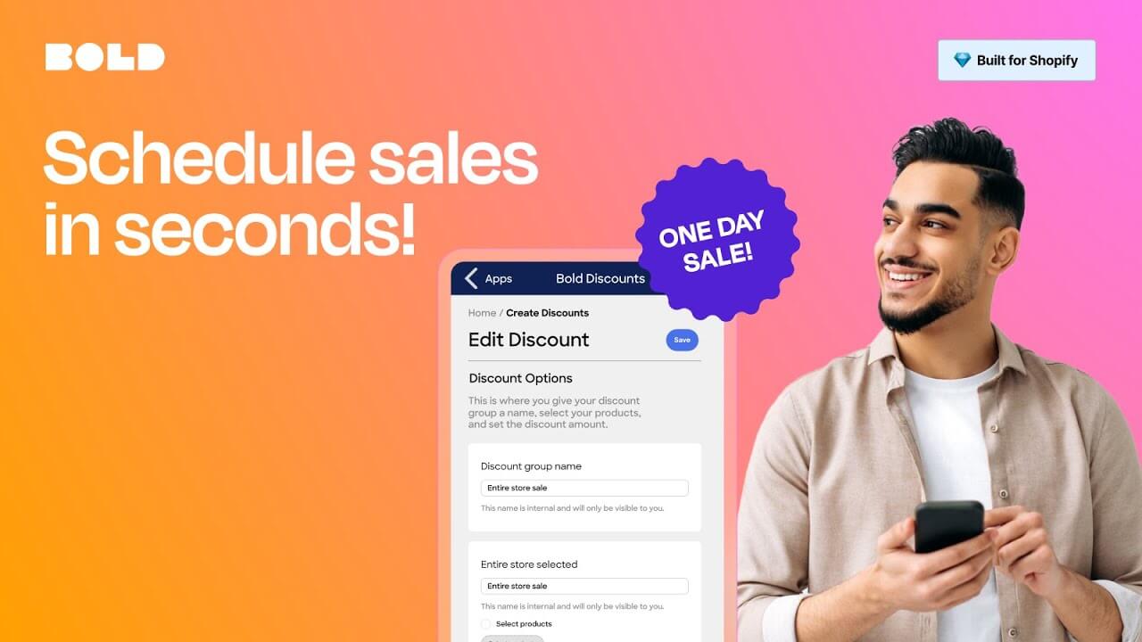 • BOLD Discountsを使うと、Shopifyマーチャントはフラッシュセールや定期プロモーションを作成できます。