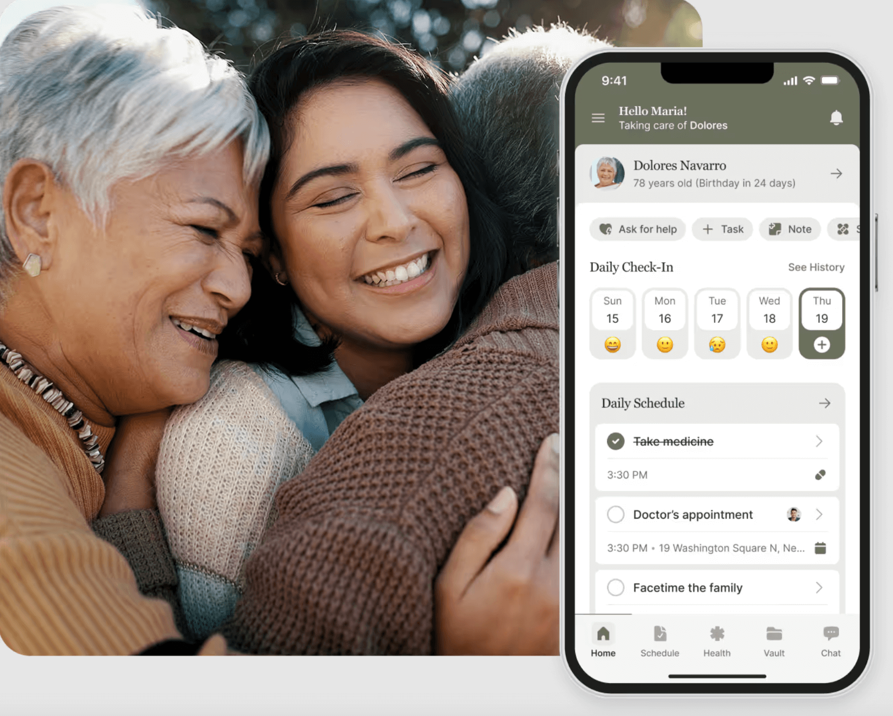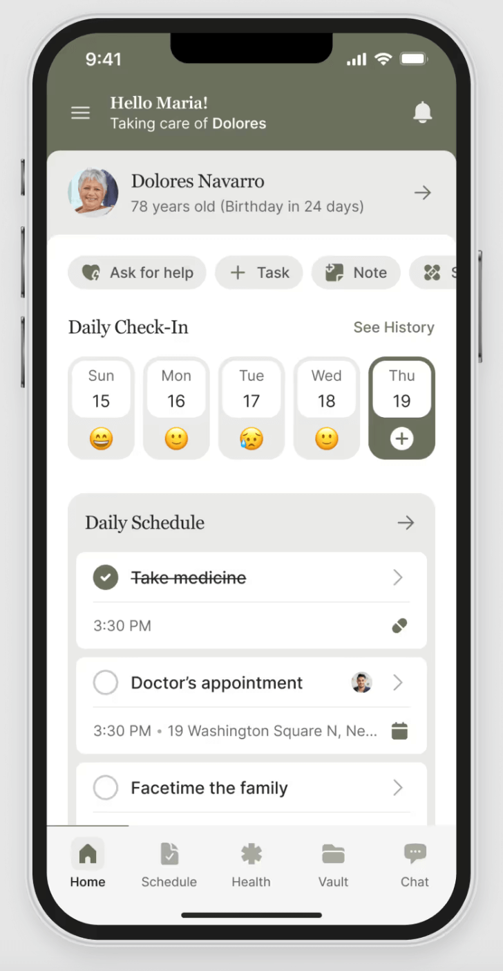Shared calendar & task lists: schedule appointments, habits & responsibilities across your care team.