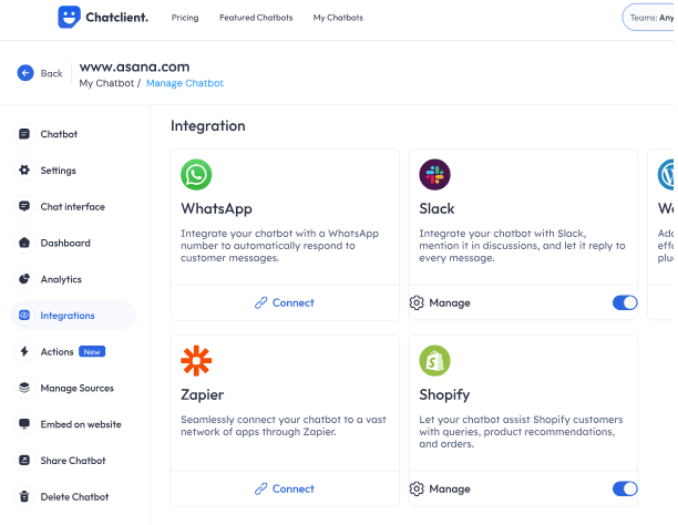 データに基づいてエージェントをトレーニングし、サポート、リード、エンゲージメントを自動化するカスタムAIチャットボットビルダー。