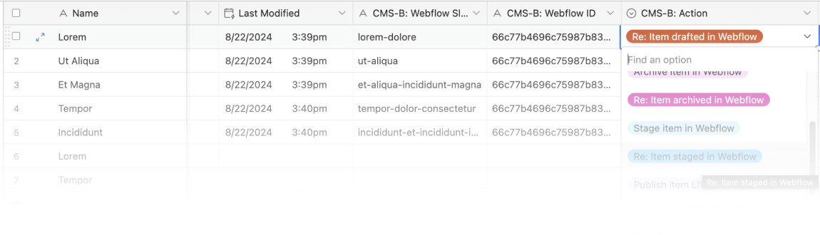 エアテーブルとウェブフロー CMS の間で簡単にデータを双方向に同期できます。