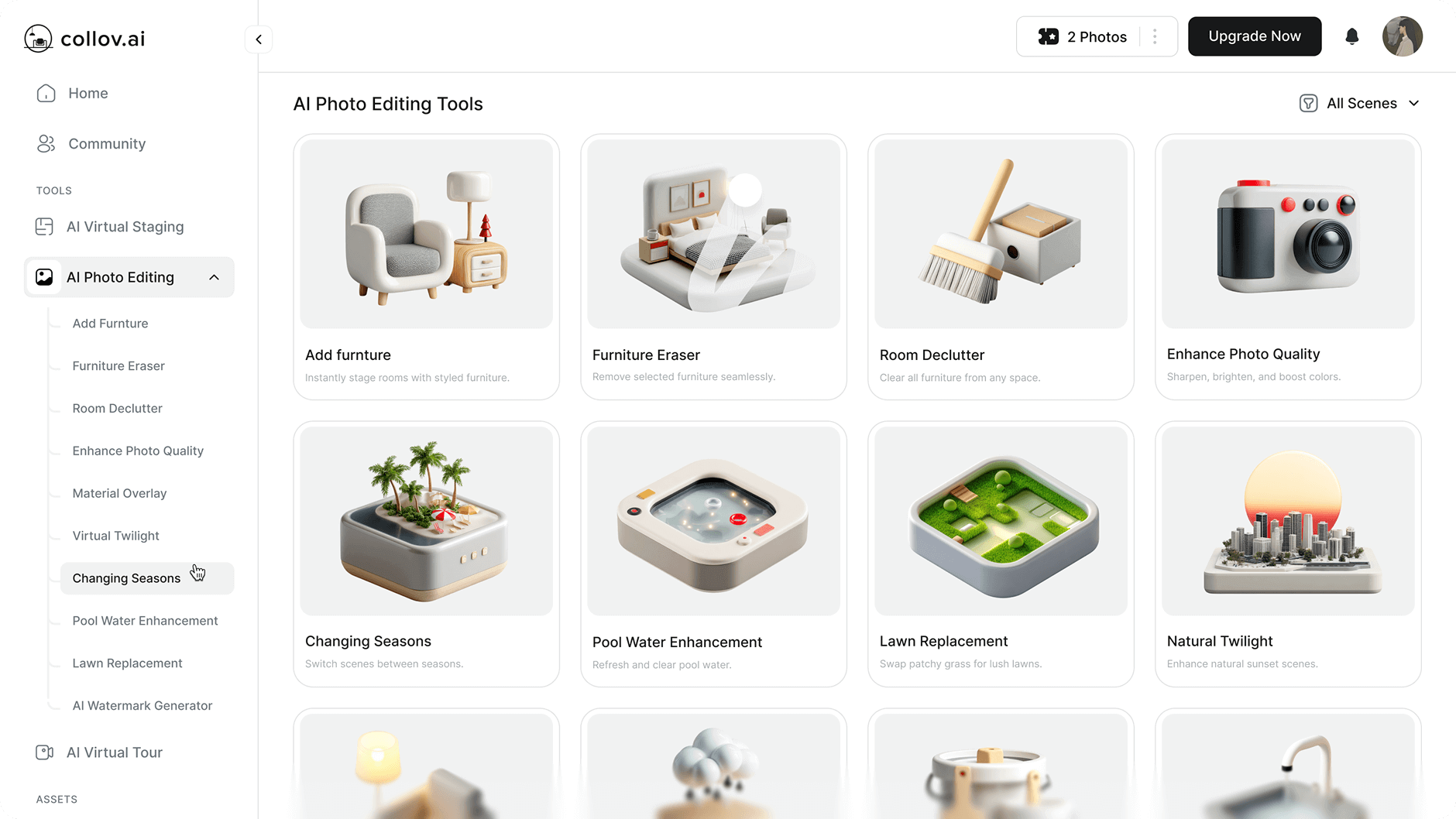 Collov AIは、不動産の専門家、インテリアデザイナー、住宅所有者が、最先端の人工知能を使用して、視覚的に美しく、市場に出回っているような不動産写真を作成するのに役立ちます。