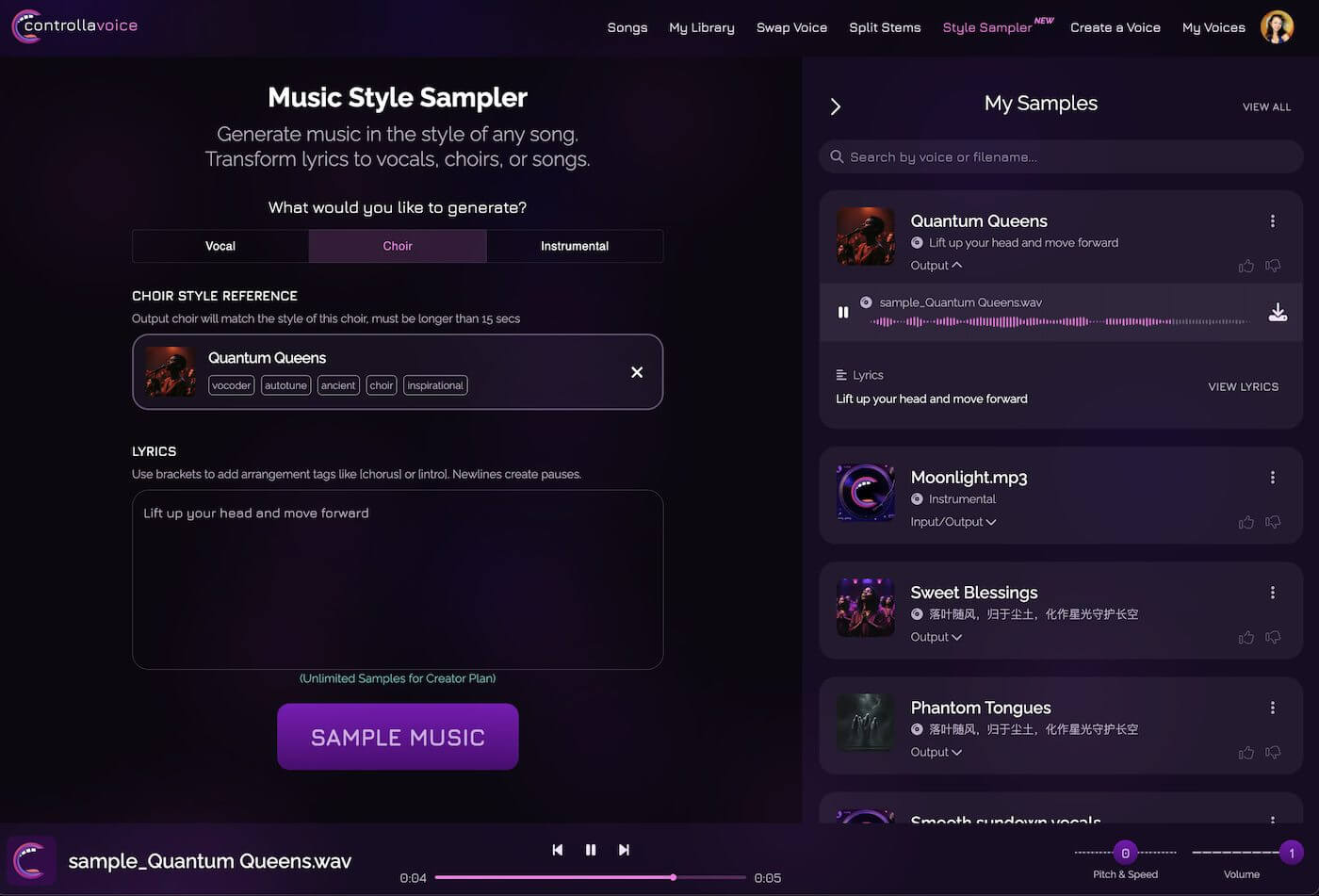 Controlla Voiceを使用すると、自分の声からリアルなAI歌声を作成し、ブレンドして合唱を生成できます。