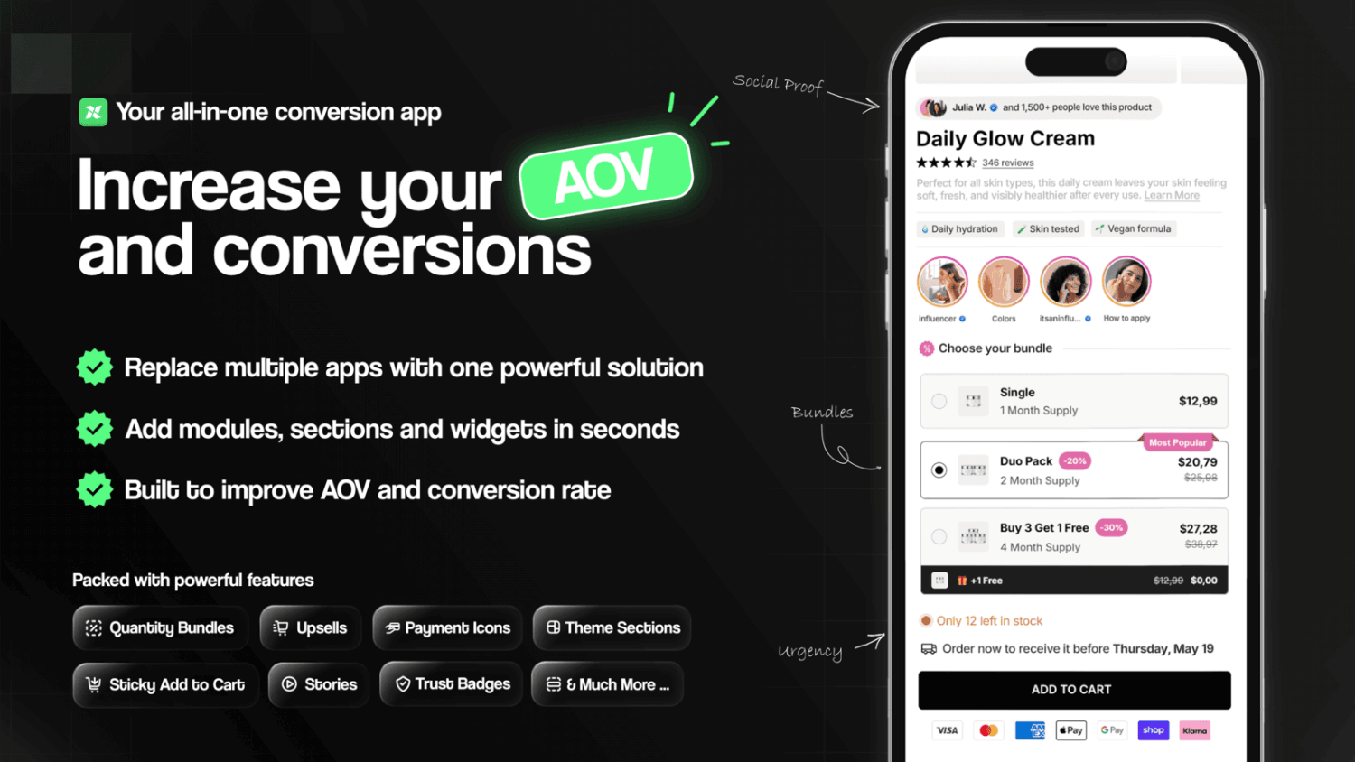 ConvertXは、バンドル、トラストバッジ、アップセルなどの「セールスブースター」をストアに追加するアプリの1つです。