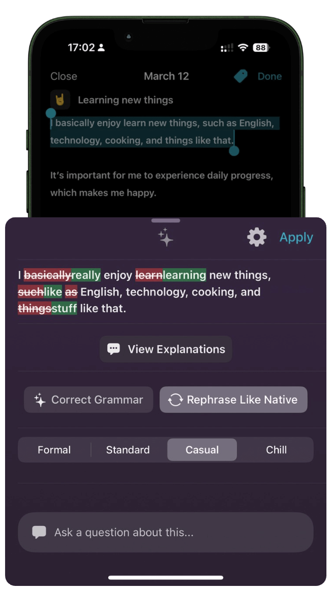 テスト対策や文法練習だけでなく、個人的で表現力豊かな英語に集中しましょう。