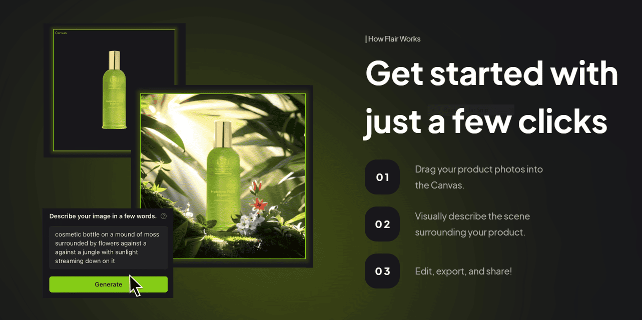 電子商取引ブランド、マーケティング担当者、デザイナー向けに特別に構築されたAI製品写真ジェネレーターおよびエディター