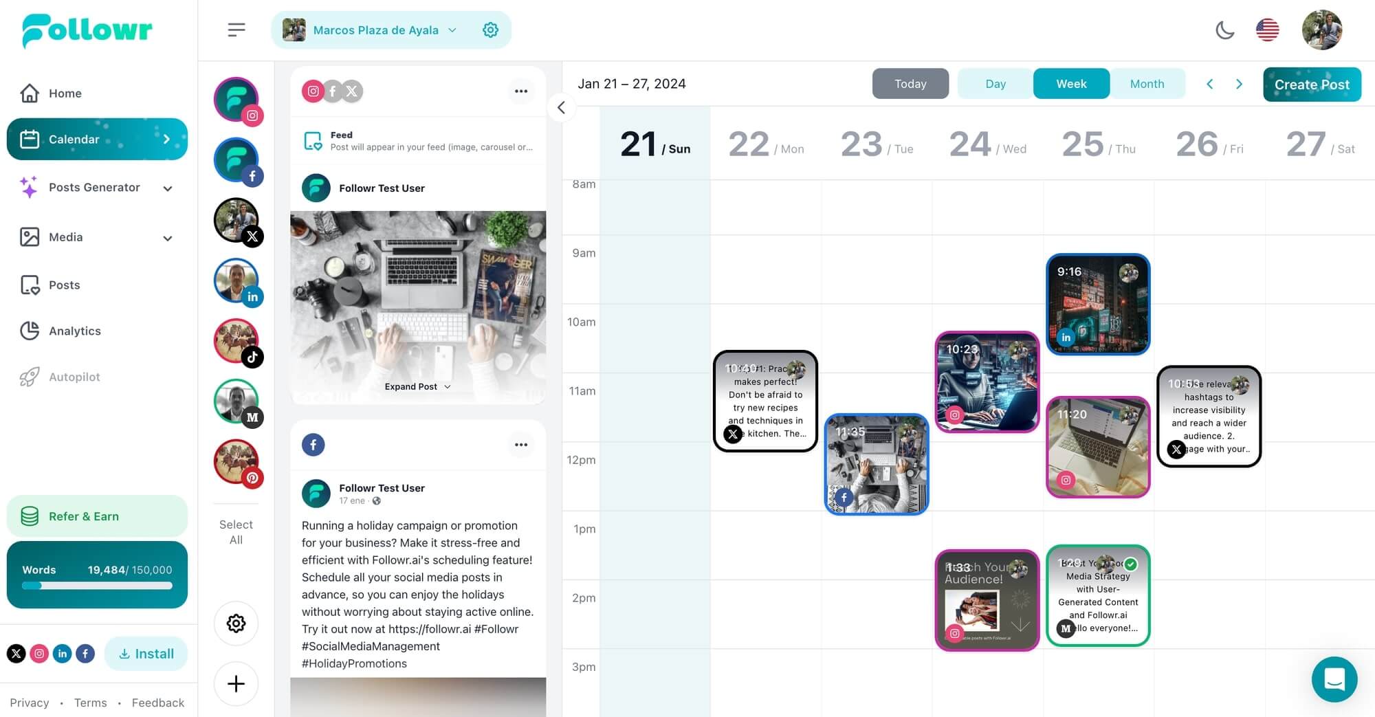 • 複数のプラットフォームでの投稿をスケジュールする:ソーシャルメディアへの投稿を、エンゲージメントに最適なタイミングで公開するようにスケジュールします。