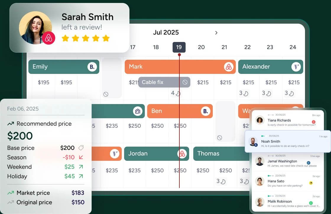 短期レンタルを管理するオールインワンプラットフォームで、予約、コミュニケーション、価格設定、運用をすべて1か所で行えます。