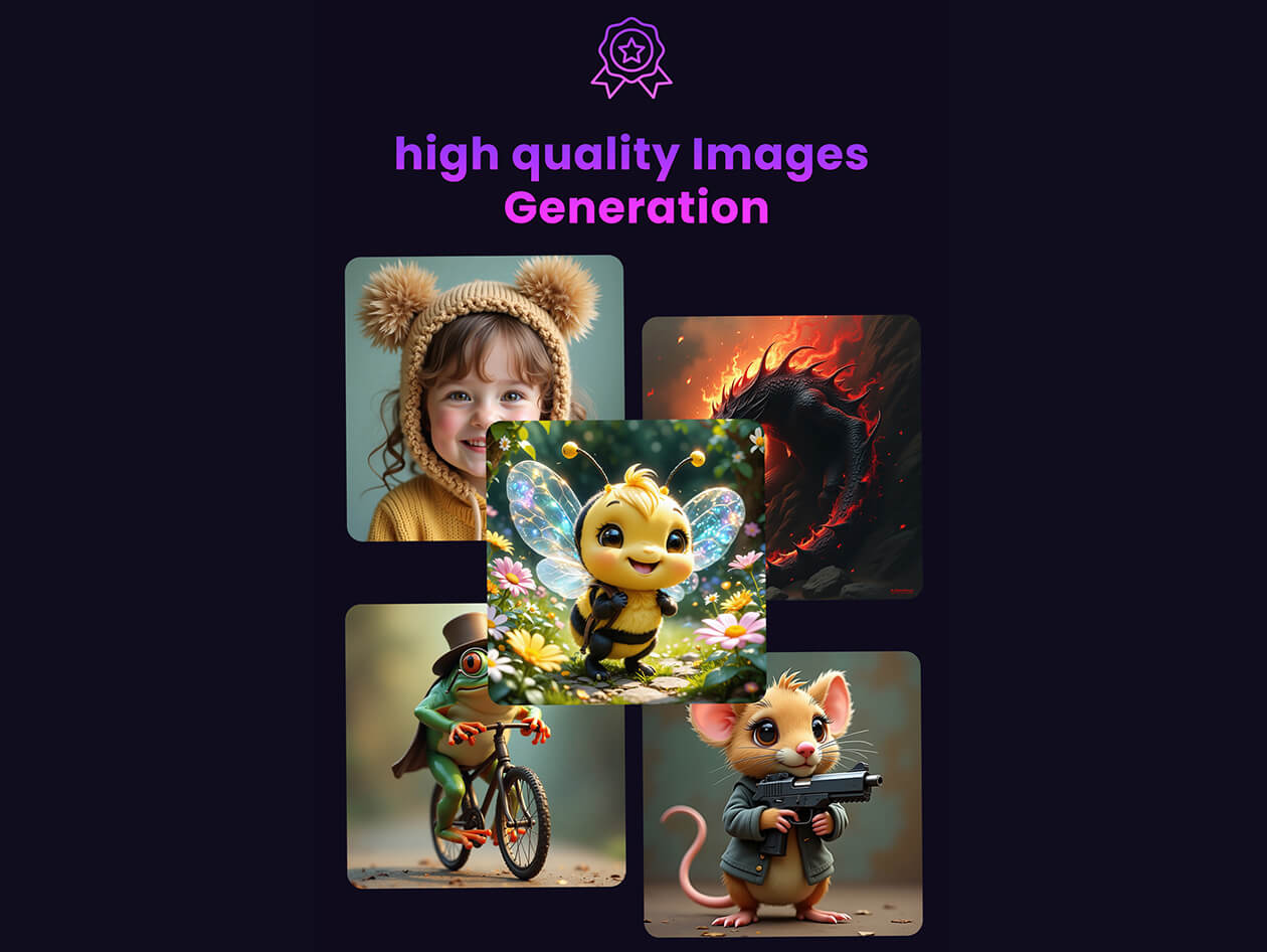 高度なAIモデル(Stable Diffusion、Flux)を使用して、テキストプロンプトを高品質のビジュアルに変換します。