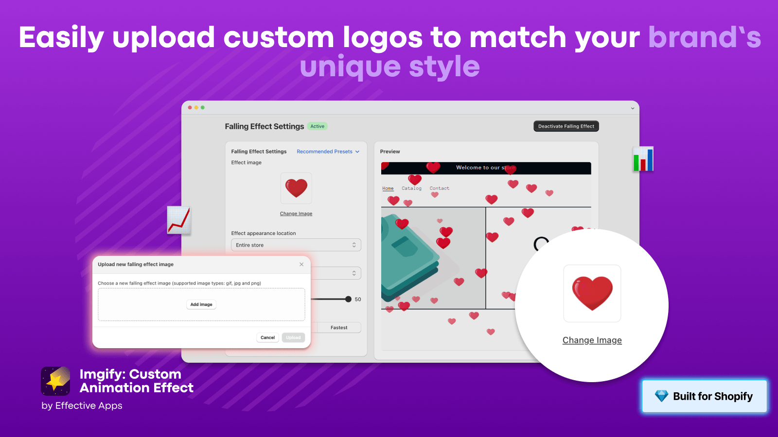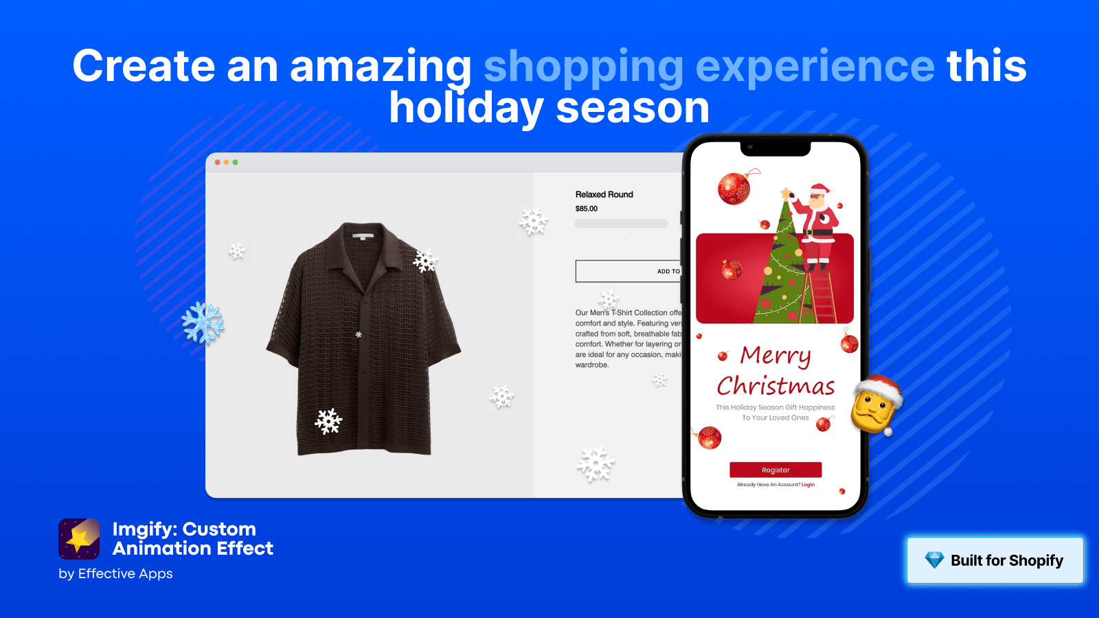 ホリデープリセット付きのワンクリックで落ちてくるロゴ/画像エフェクト(カスタムスピード/量/ページ)を追加して、ショッピングを促進し、コンバージョンを増やします。