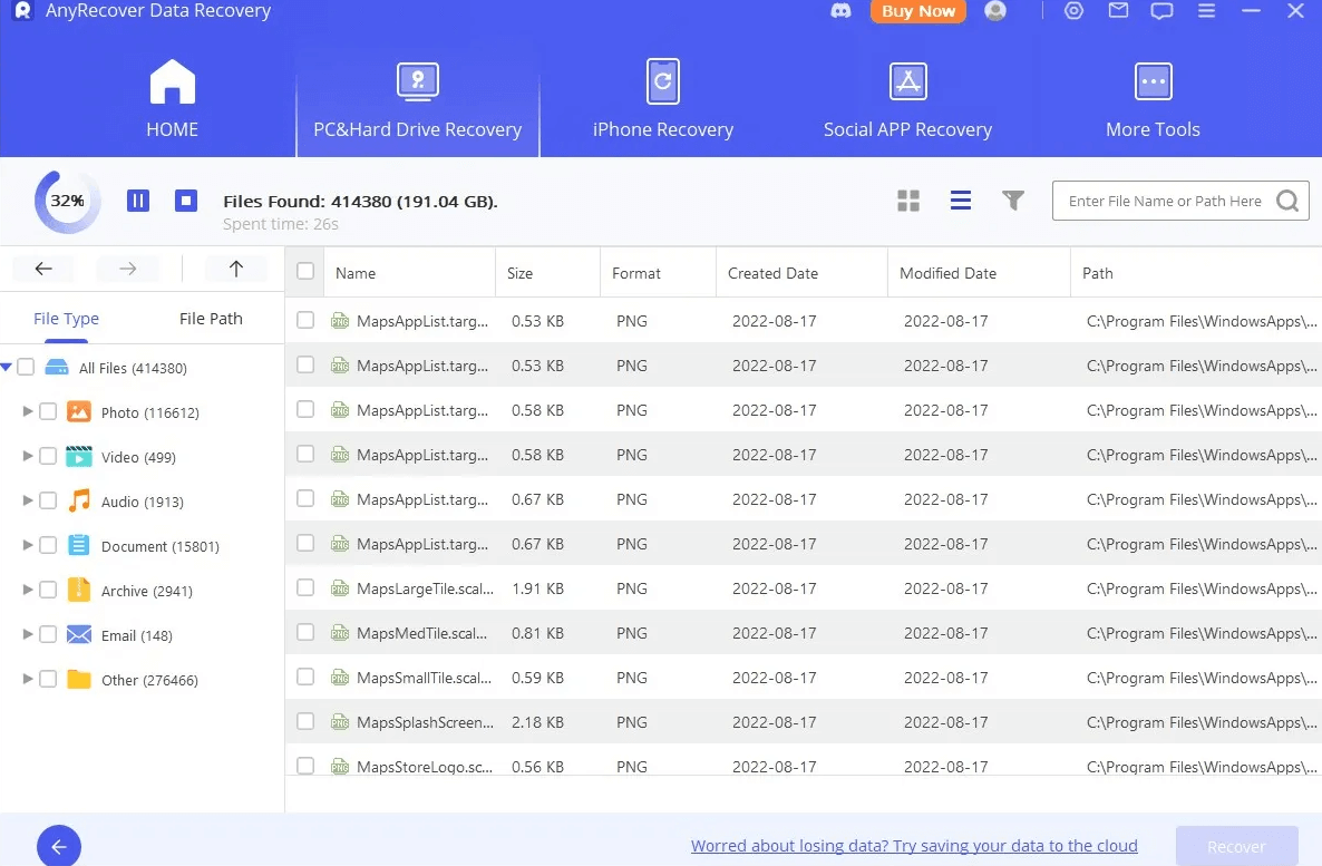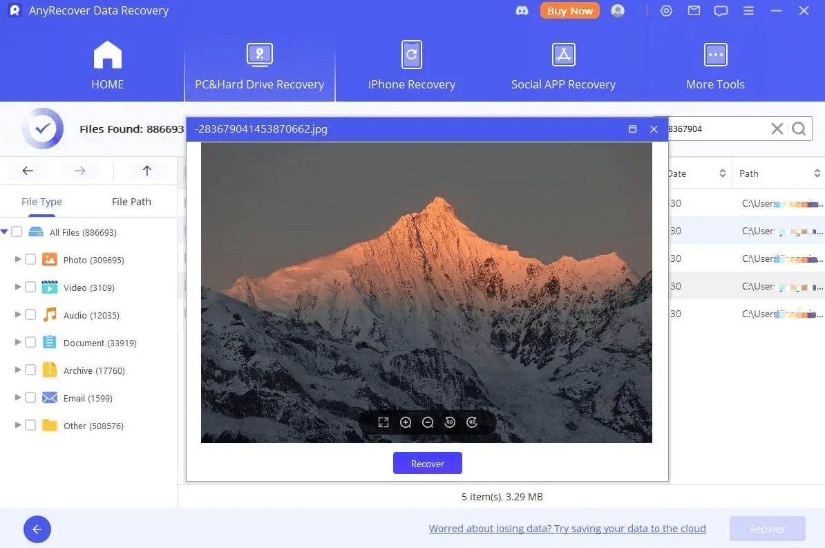 わずか3つの簡単なステップで、1000種類以上の削除されたファイル、ごみ箱、コンピュータクラッシュ、フォーマットされたデバイス、破損したハードドライブ、失われたパーティション、その他のデータ損失シナリオの回復をサポートします。iMyFone AnyRecoverでは、データを復元する場所を選択すると、クイックスキャンが開始され、復元前にファイルをプレビューできます。さらに、ファイルフィルター機能が付いており、失われたファイルを名前、タイプ、日付で指定できます。