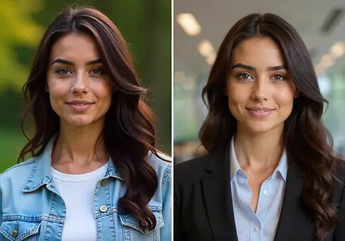 自撮り写真を洗練されたプロ仕様のヘッドショットにすばやく変換するAIツール。写真撮影は不要です。