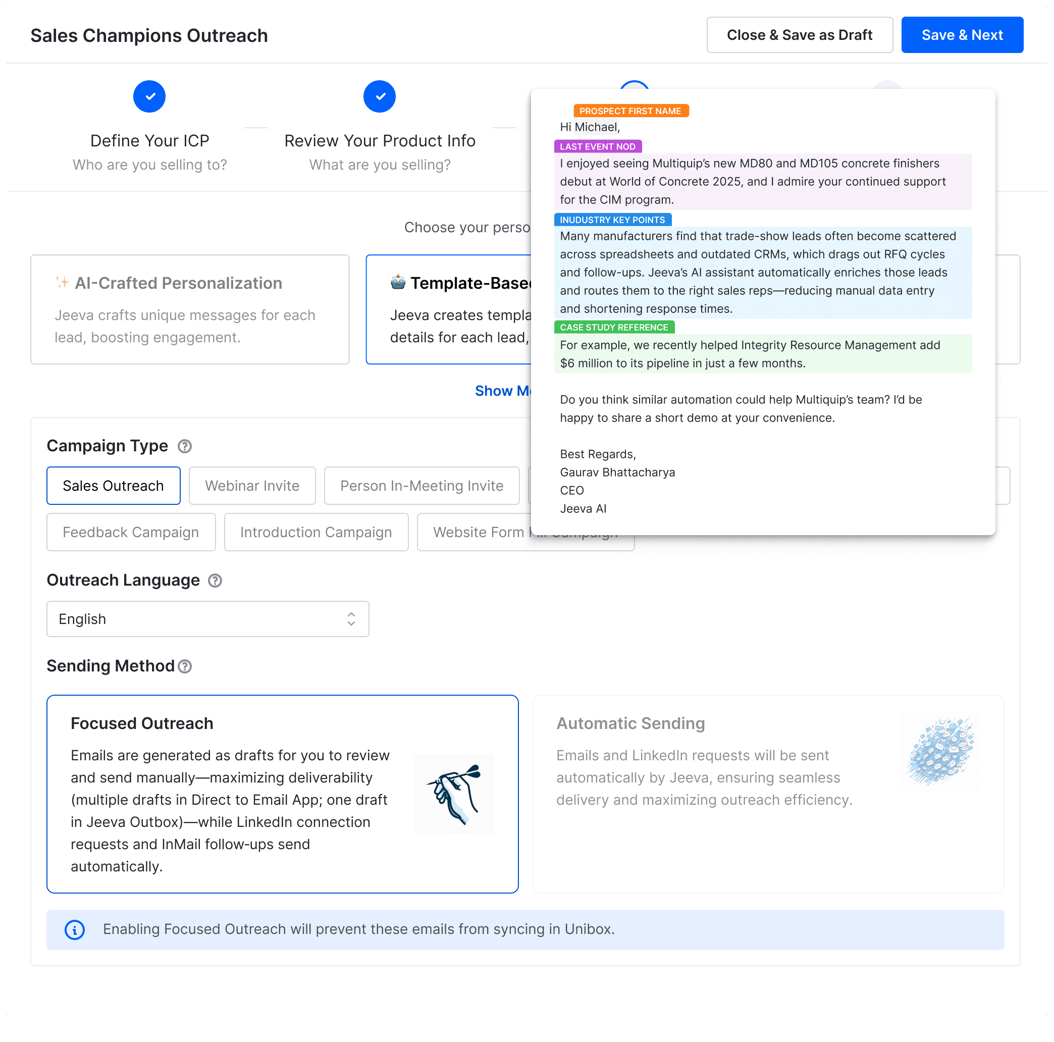 Jeeva.ai は、見込み客の発見、アウトリーチ、フォローアップ、および関連する営業タスクを処理する「エージェント」AI販売自動化プラットフォームです。これにより、営業チームは忙しい仕事よりもクロージングに集中できます。