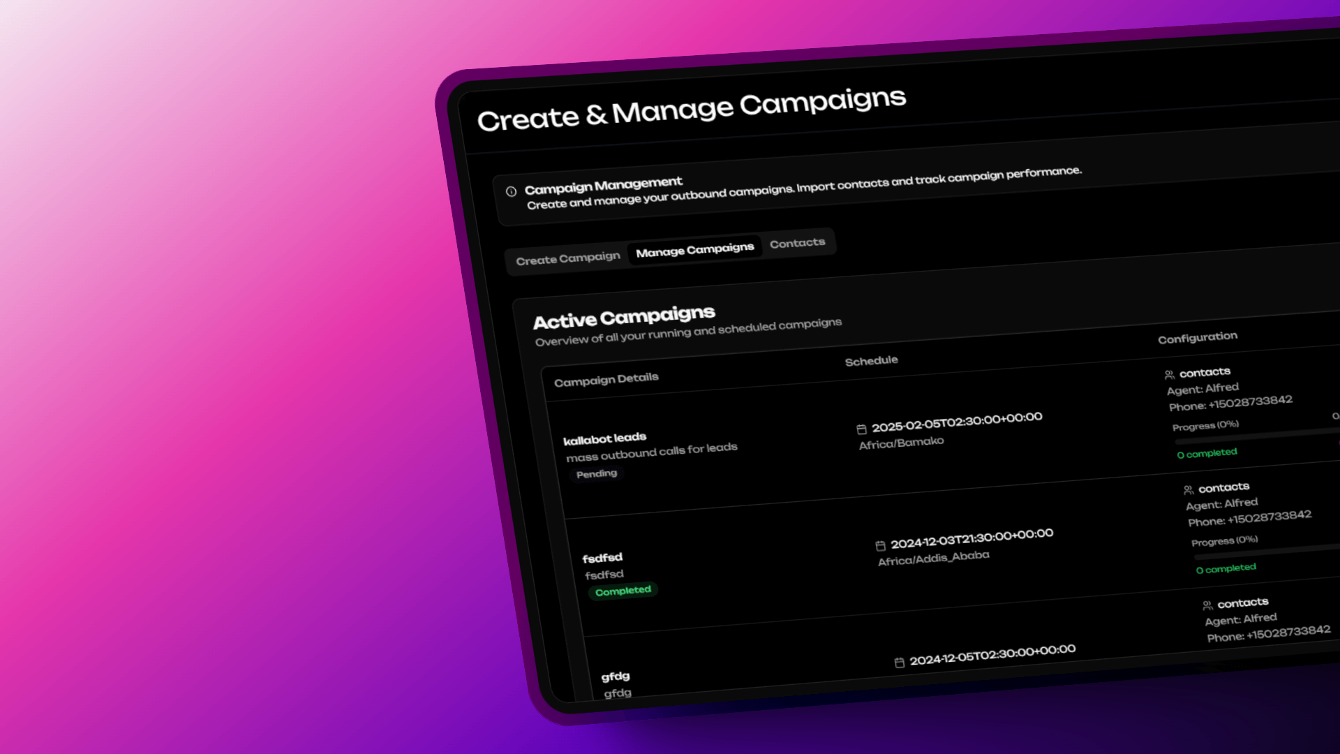 インバウンドとアウトバウンドの通話を自動化するためのAI音声エージェントプラットフォーム。