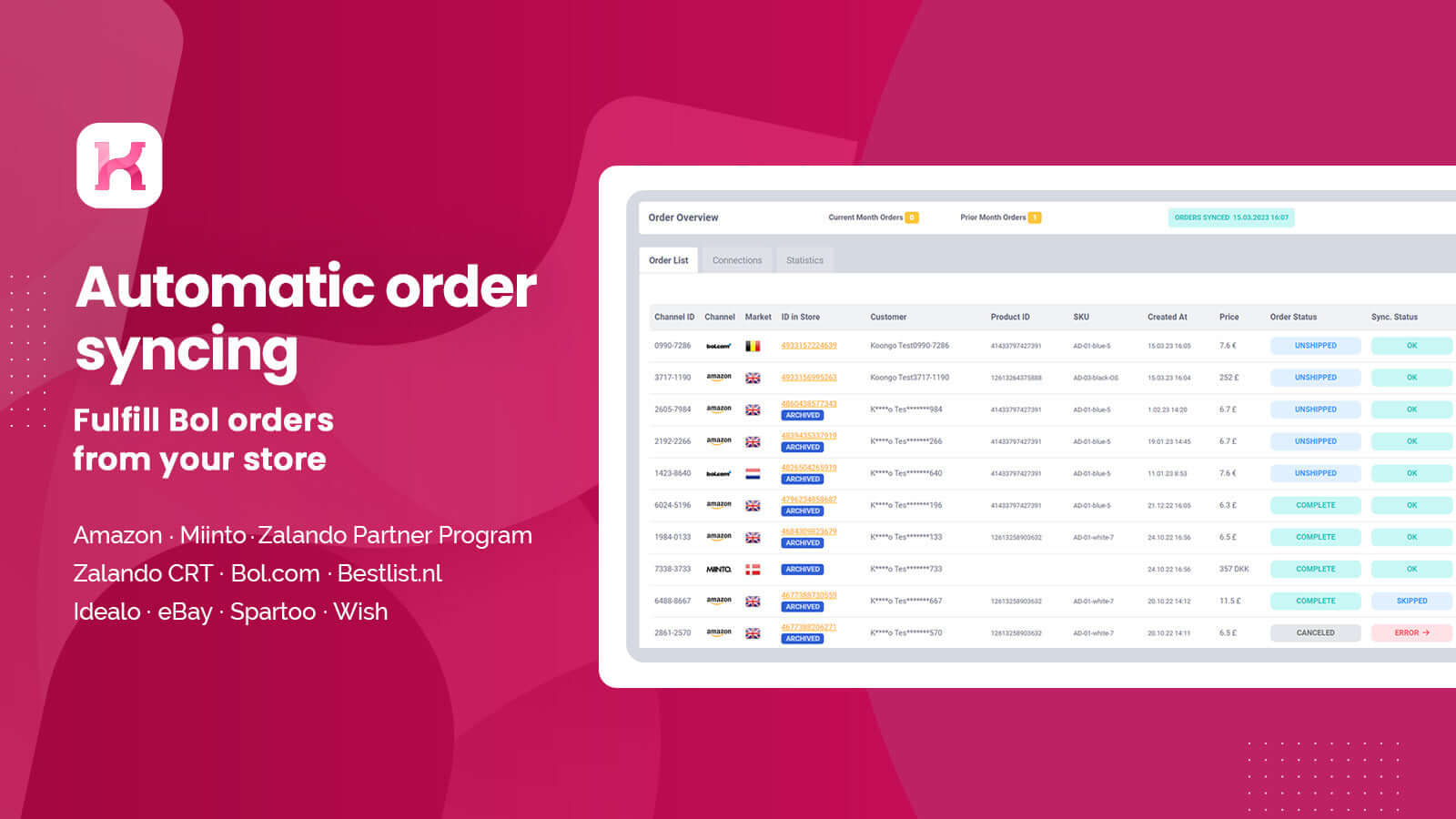 Amazon、eBay、Zalandoなどのマーケットプレイスで販売するための商品フィードと注文の同期が簡単です。
