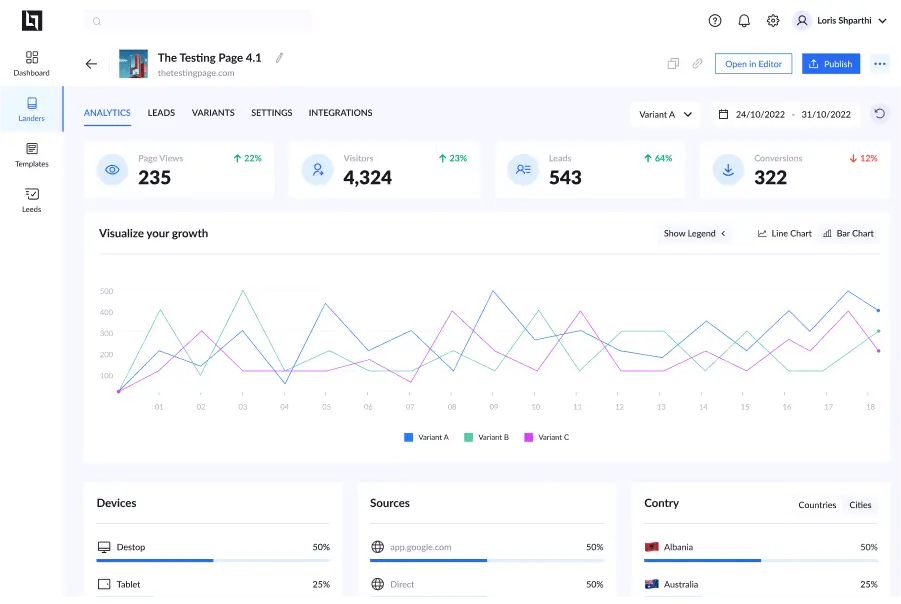 Landerlab.ioは強力なランディングページビルダーで、コンバージョン率の高いページを簡単にデザインできます。直感的なインターフェイスと、作成、最適化、追跡用の組み込みツールにより、プラットフォームはプロセスのすべてのステップを合理化します。
