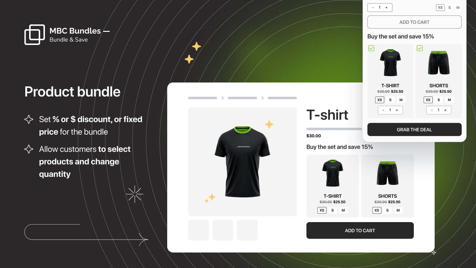 BOGO、ミックス&マッチ、ボリュームディスカウントのバンドルを作成して、AOVとコンバージョンを増やしましょう。