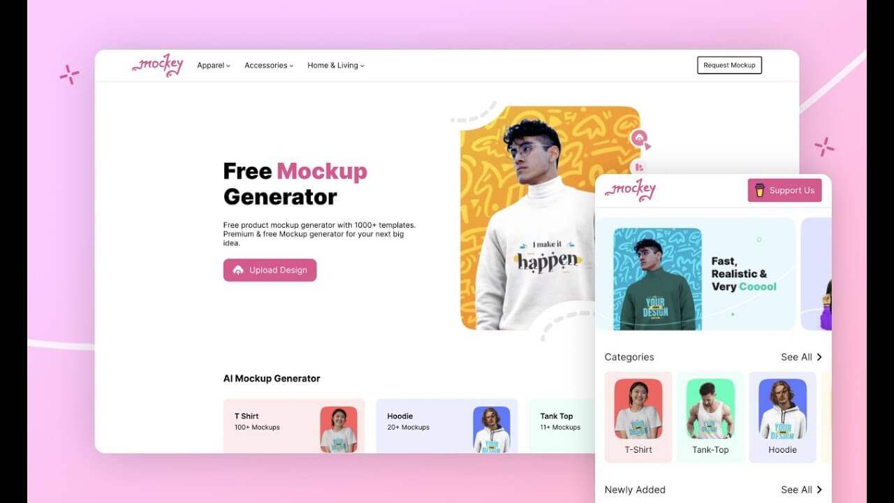 Mockey.ai には、アパレル、アクセサリー、パッケージ、テクノロジーなど、45以上のカテゴリにわたる12,500を超えるユニークなモックアップテンプレートが用意されています。