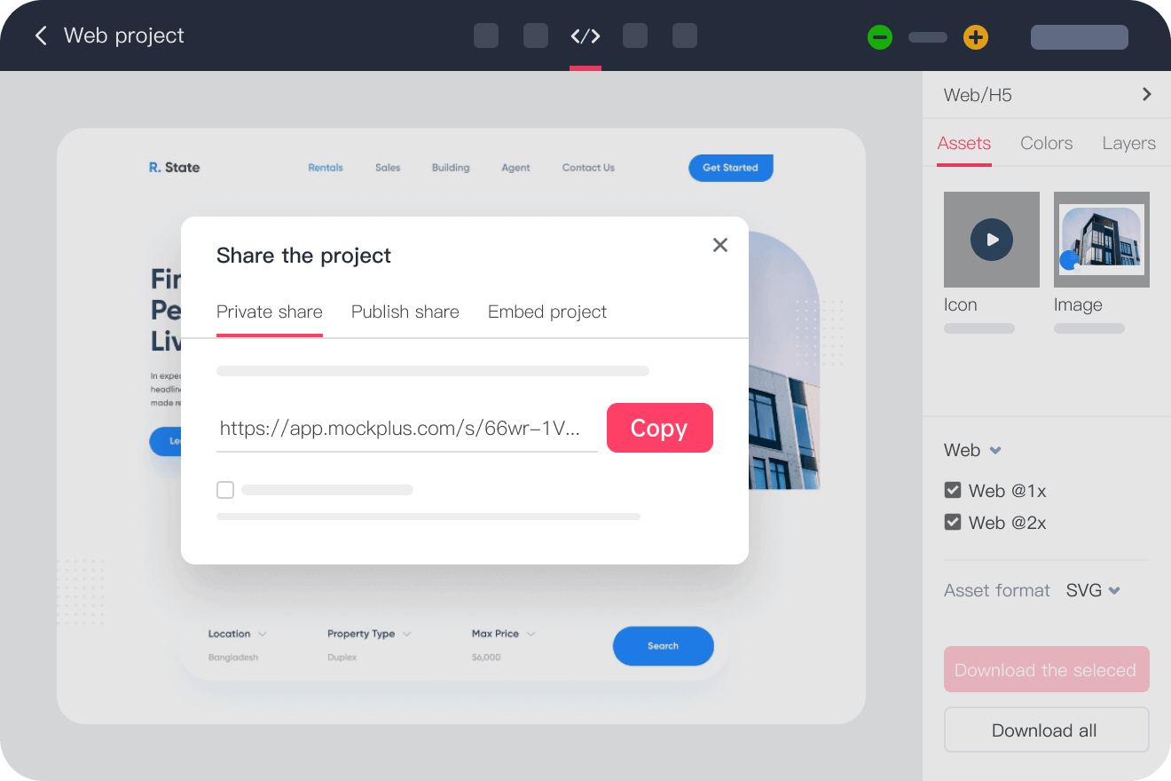 プロトタイプ、アセット、コメント、フィードバックをチームでリアルタイムに共同編集できます。