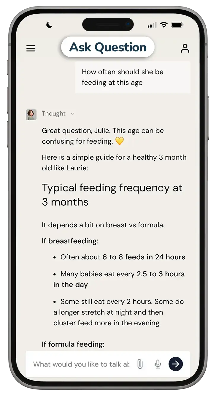 アシスタントは、子育てに関する本や専門家にオンデマンドで問い合わせるのと同じような会話形式のサポートを提供します。