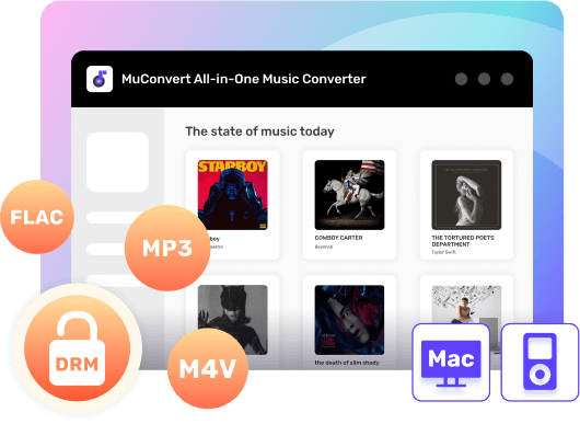 複数のストリーミングプラットフォーム (Spotify、Apple Music、Amazon Music、YouTube Musicなど) のオーディオをMP3、WAV、FLACなどの形式に変換できます。