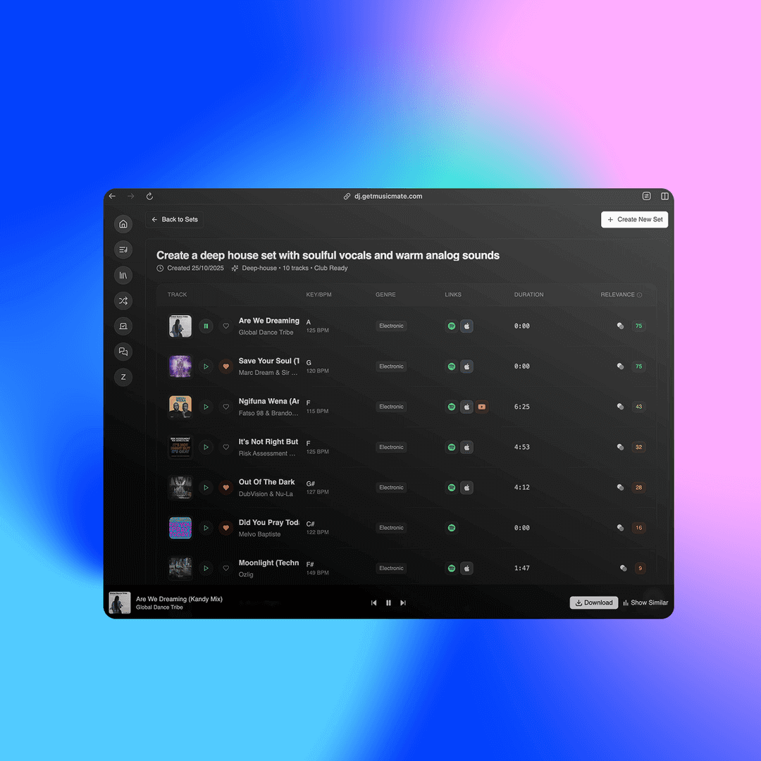 MusicMateは、Beatport、Bandcamp、SoundCloudなどのプラットフォームからの音楽データを統合することで、DJがトラックを見つけてDJセットを計画するのに役立つAI搭載ツールです。