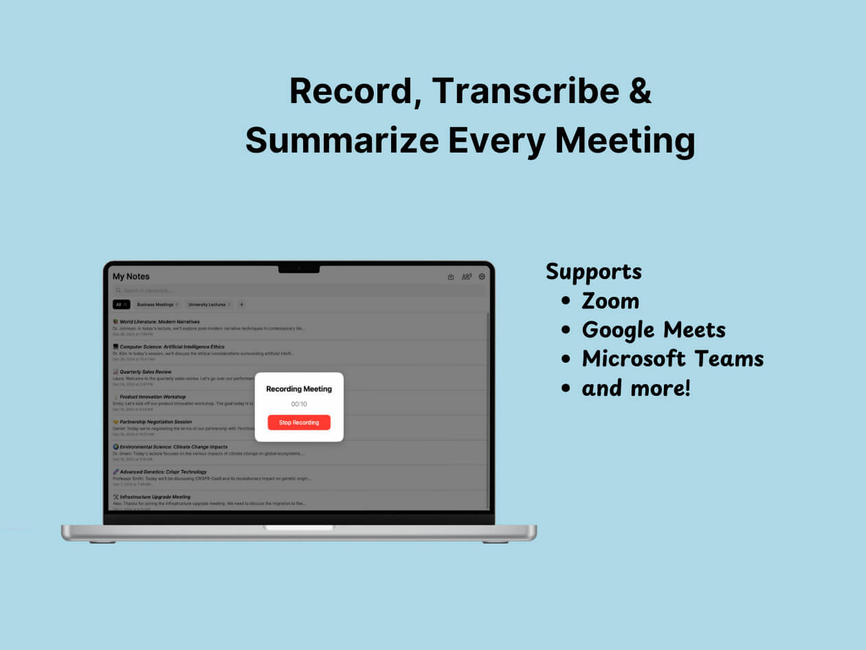 会議や講義を書き起こし、整理されたメモにまとめるAIアプリ。