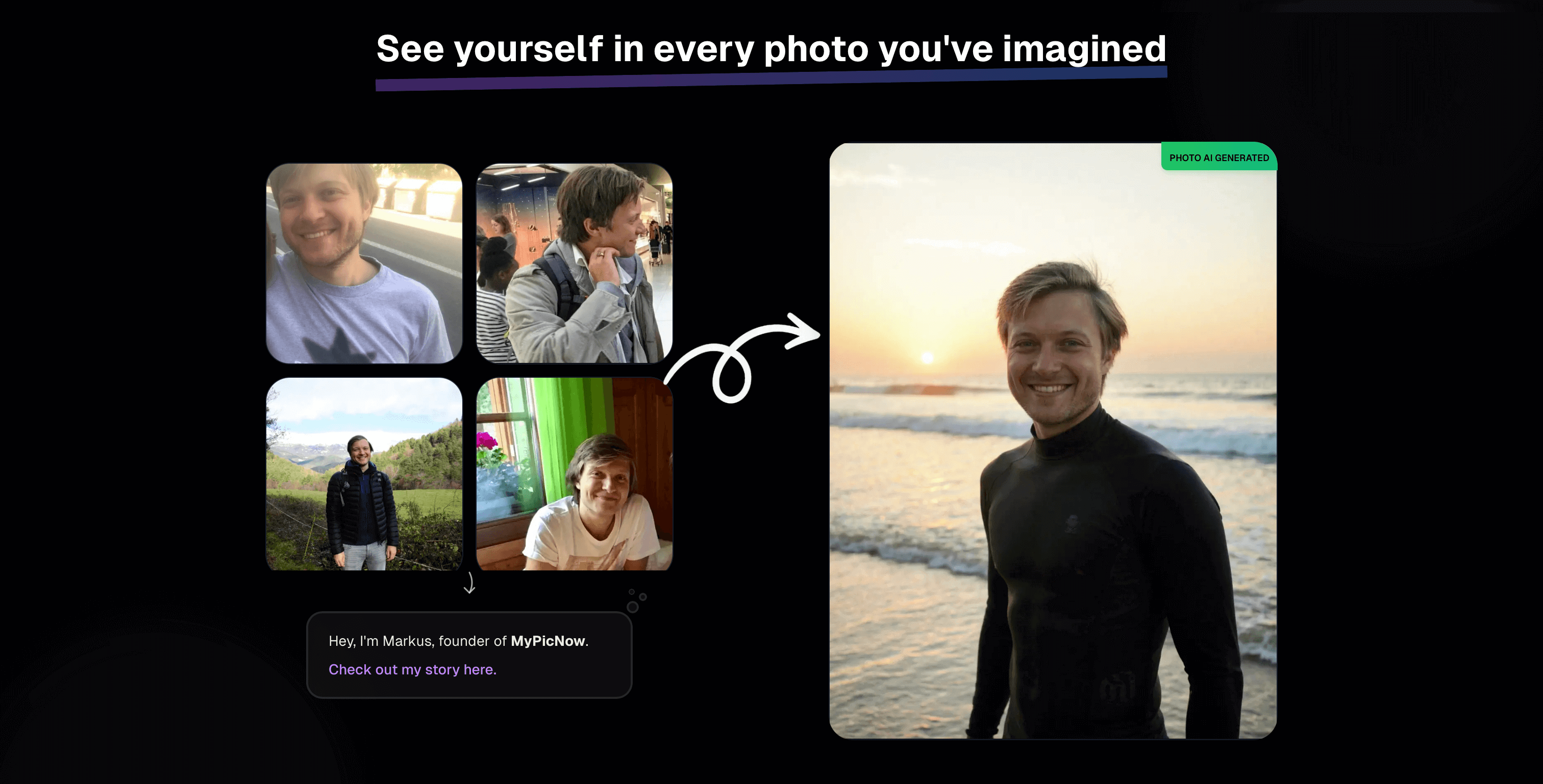 MyPicNowは、ユーザーの写真をプロ仕様のヘッドショットに変換するAI搭載の画像生成プラットフォームです。