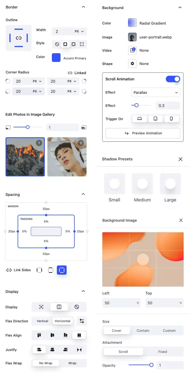 レイアウト要素、モーションエフェクト、グローバルスタイリング、レスポンシブ編集を提供することで、デザイナーや開発者はコーディングなしでモダンでレスポンシブなウェブサイトを作成できます。