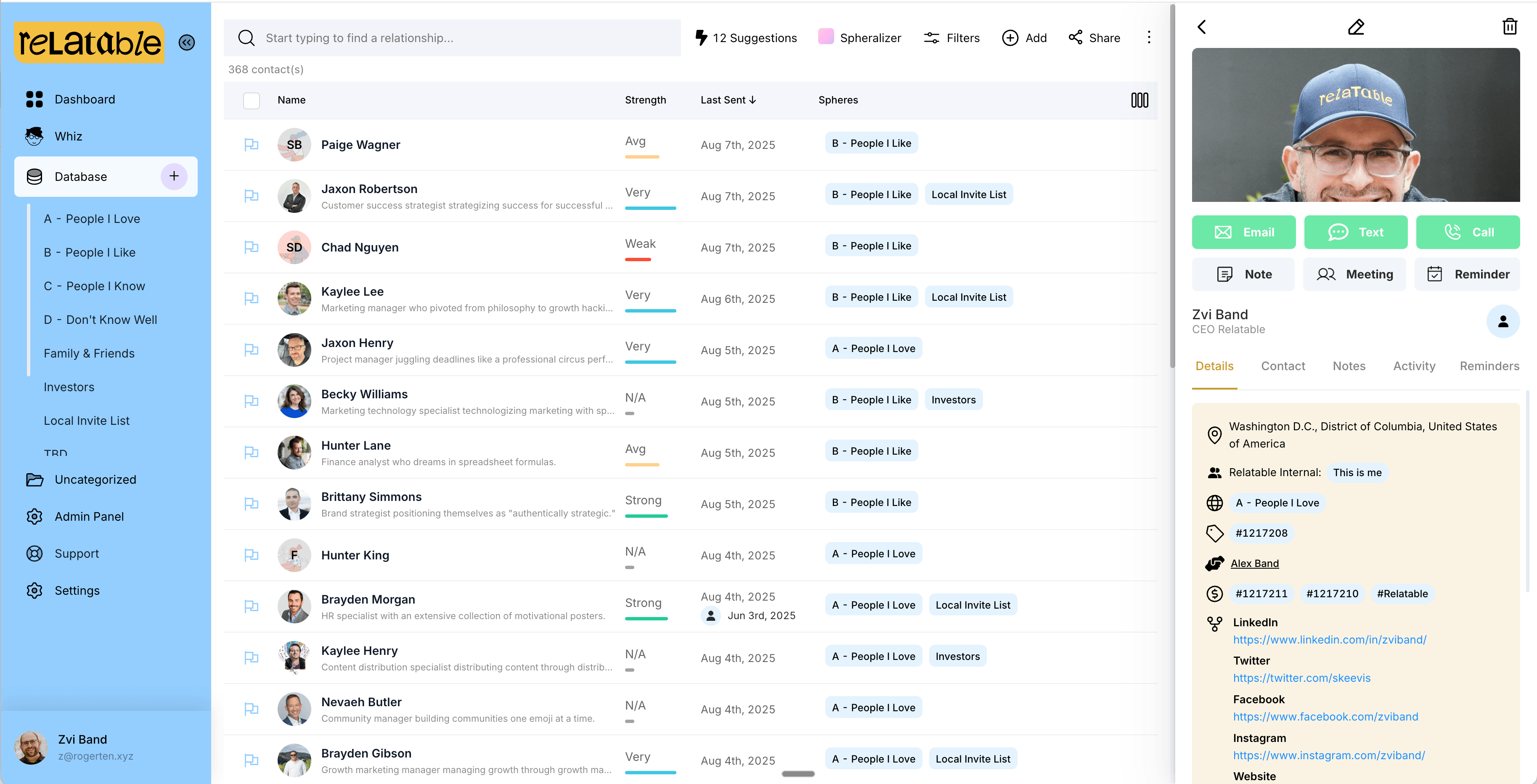 個人が連絡先を整理して関係を追跡するのに役立つ個人用 CRM