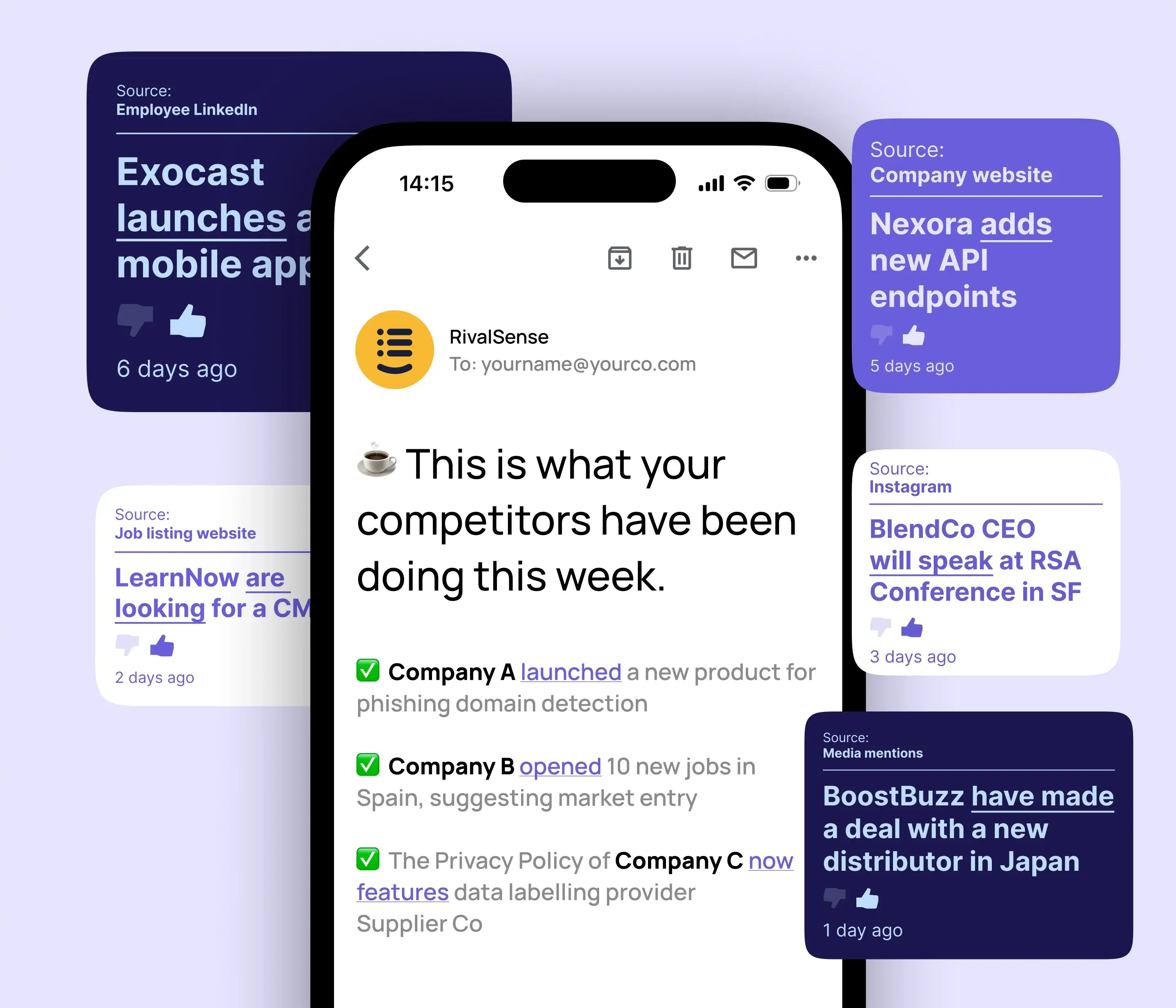 RivalSenseは、次のような競合他社からのさまざまな変更や更新を監視します。