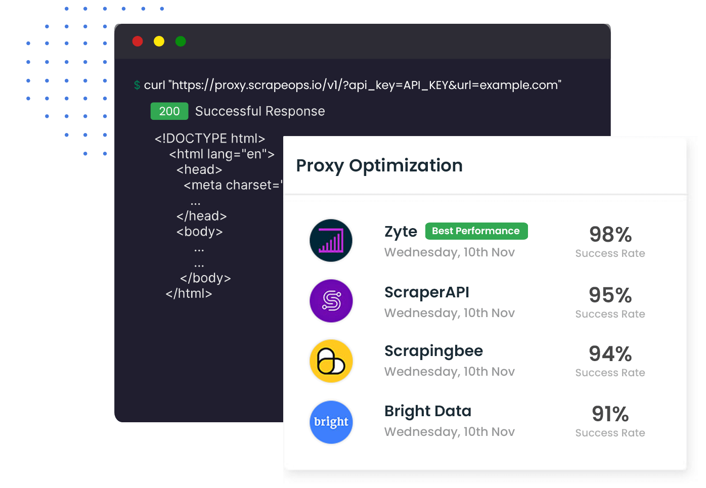 プロキシアグリゲーター:20 以上のプロキシプロバイダーを統合し、ドメインに最適なプロバイダーを自動的に選択します。