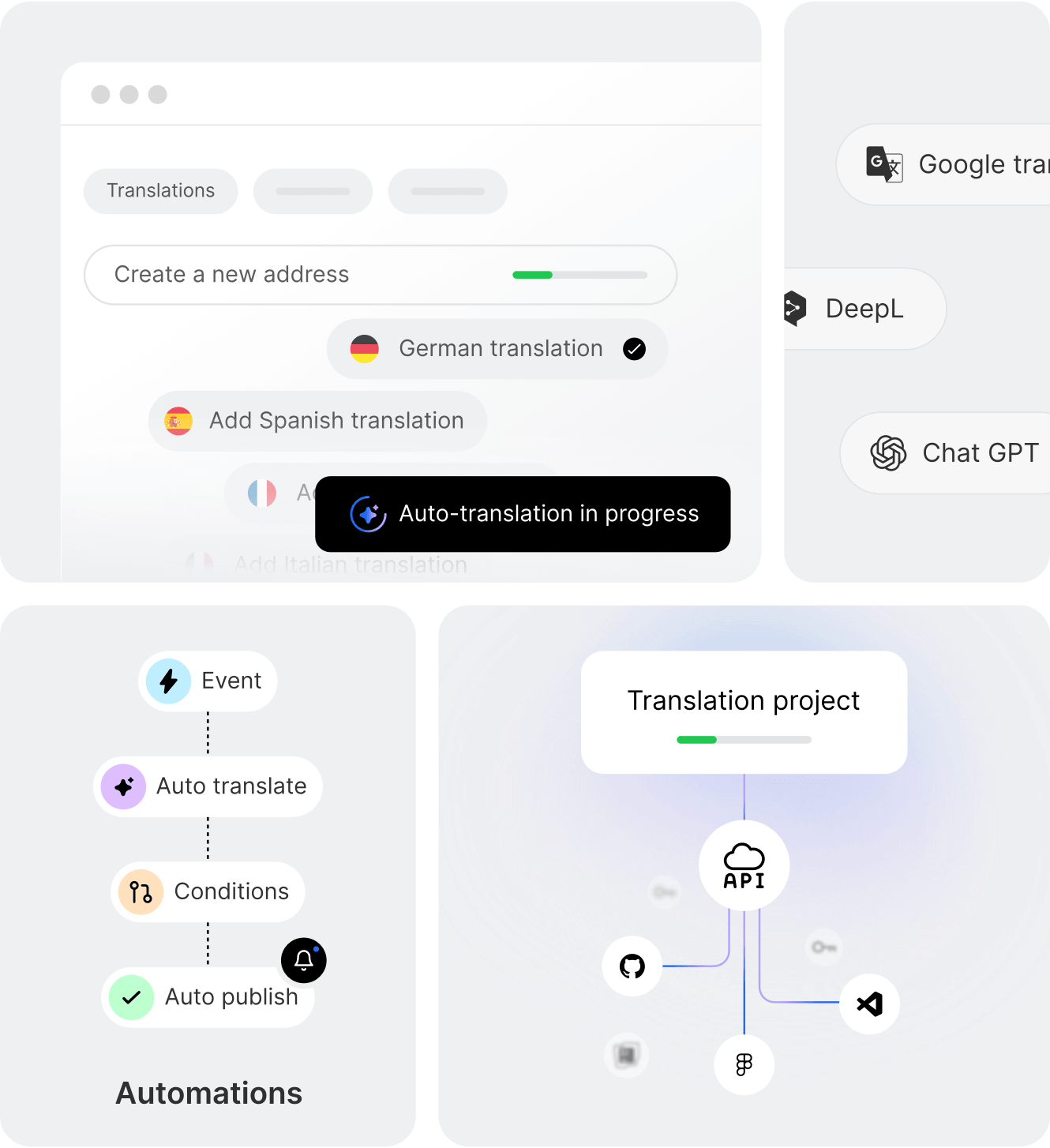 ローカリゼーションワークフローを自動化するための翻訳管理プラットフォーム。