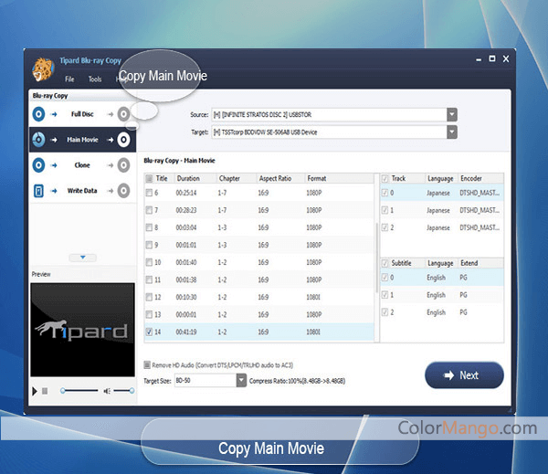 Tipard Blu-ray copyは、Blu-rayディスクをISOファイルまたはBlu-rayディレクトリにコピーしてバックアップできるソフトウェアです。これにより、ビデオディスクがなくても今後も視聴を続けることができ、DRM保護ディスクもサポートします。
