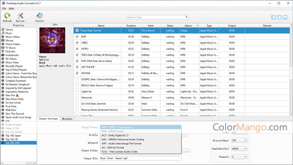 TuneKeep Audio Converter is very simple to use: Step 1 - Start the TuneKeep Audio Converter to select the Apple Music songs and Audiobooks you need to convert. Step 2 - Select the output format, which supports MP3, M4A, AAC, FLAC, AIFF, au, AC3, and other formats. You can also choose the preset audio quality from the configuration file list. Step 3 - Click the "Convert" button to convert Apple Music songs and audiobooks into specific formats.