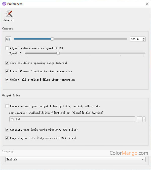 TuneKeep Audio Converter Features: 1. Up to 16 times faster conversion speed 2. Keep ID3 tags, such as title, album, artist, track number, genre, illustrations, etc 3. Convert Apple Music and audiobooks into MP3, M4A, AIFF, FLAC, etc. 4. Sort and rename the output files by album, artist, track number, hyphen, space, etc