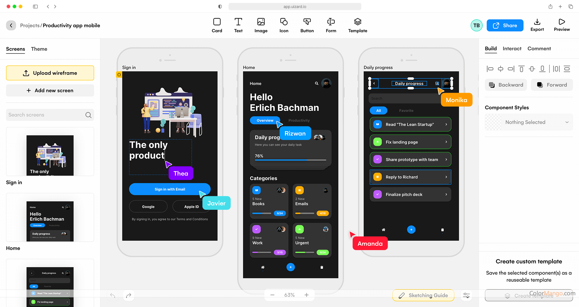 Users can customize them according to their preferences, add pre-built components, and generate custom themes, making it user-friendly for non-technical users without coding knowledge. Uizard also supports real-time collaboration, allowing users to share their website design outcomes with team members.
