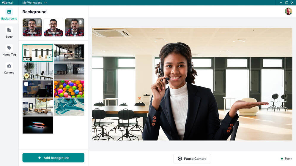 背景の削除、置換、ぼかし効果、ブランディング、カメラの最適化をリアルタイムで行うAI搭載のWebカメラ強化アプリ