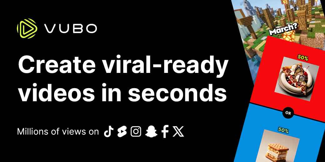 VUBOはAI搭載の動画作成ツールで、アイデアを高品質でスクロール停止の動画に変換し、次のようなプラットフォームで使用できます。